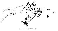 Ahora que se había apagado el fuego, la gallina parecía encontrarse mejor. Se sostenía bien en pie, y agitó las alas. Luego se agachó, como si se preparase a saltar. Y saltó. Saltó muy alto y dio una voltereta completa, aterrizando sobre las patas.