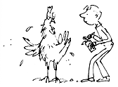 Las gallinas son unas aves muy tontas y muy voraces. Creen que todo es comida. Esta pensó que la cuchara estaba llena de grano. Se acercó a saltitos, torció la cabeza a un lado y miró la cuchara.