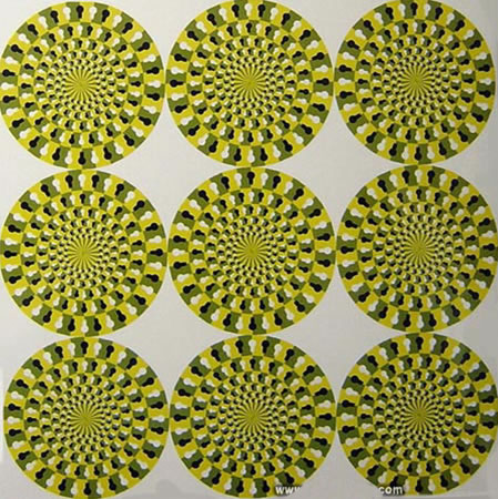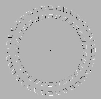 ILUSIONES ÓPTICAS Miren estas ilusiones ópticas.... están bastantes buenas! EN ESTA PRIMERA ILUCION OPTICA ...MIRA EL PUNTO NEGRO FIJAMENTE Y MOVE TU CABEZA PARA DELANTE Y PARA ATRAS.